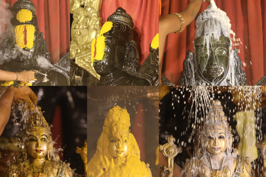 Tirumanjana Seva is the sacred abhishekam offered to Sri Ananda Venkateshwara Swami and THE SUPREME PONTIFF OF HINDUISM, Bhagavan Sri Nithyananda Paramashivam, using turmeric paste and fresh cow’s milk. This powerful offering invokes spiritual purification, renewal, prosperity, and divine guidance, aligning devotees with auspicious cosmic energies at the beginning
